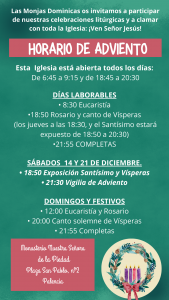 Acércate nuestro Monasterio el 7 de marzo a las 7 de la tarde Nuestras puertas estarán abiertas para que puedas unirte a nuestra oración y... Continuar leyendo
